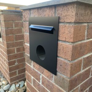 The BLACK Indian is a modern slightly rectangle face panel accepting A4 mail with ease. Using Powdercoated Stainless Steel for the face panel and a stainless steel housing insert (optional Powdercoated). The face panel attaches to the secure housing insert after your brickwork is acid washed, rendered or installed into a timber or metal fence with internal concealed fixings.