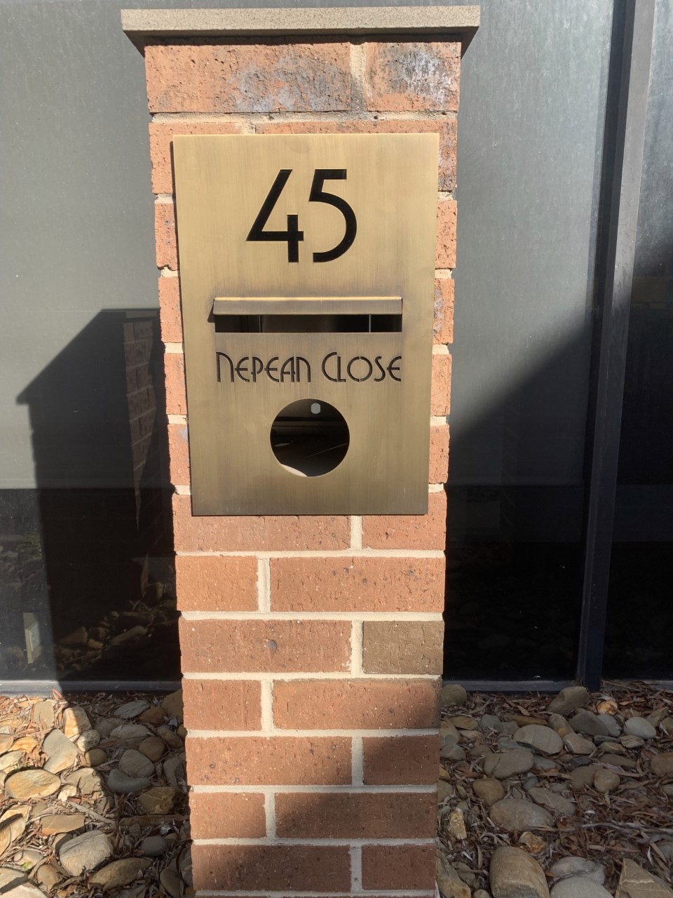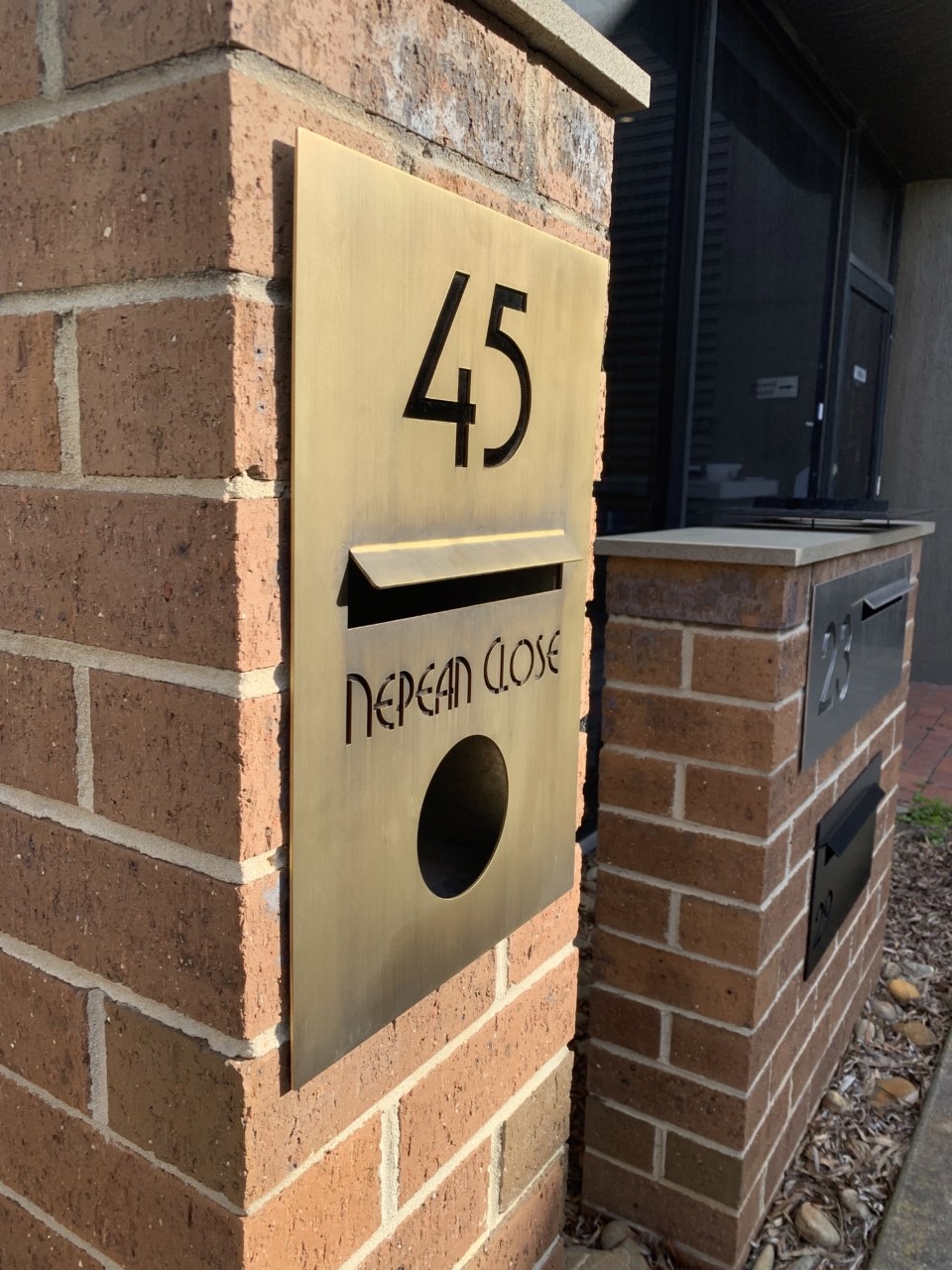 The Brass ATLANTIC has your NUMBER or full ADDRESS Laser cut to the face panel with a Black acrylic backing to highlight the text.