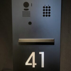 The INTEGRATED 03 letterbox comes with an Intercom & keypad fully integrated along with a letterslot and street number or address laser cut to the face panel, once we have your order we will provide you with proof drawings with your desired format for you to view and approve before production is commenced.