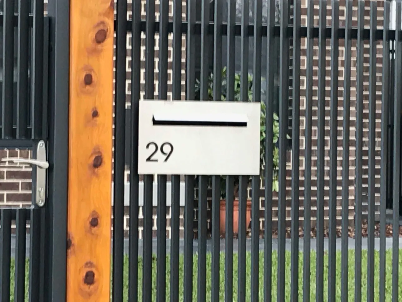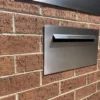 The Tasman Range is for those looking for the horizontal look, it’s a large letterbox with no paperhole that has a simple sleek look, suiting straight walls or timber fences beautifully. Using 3mm Brushed 316 Marine Grade Stainless Steel for the face panel and a stainless steel housing insert that’s 200 or 230mm Deep. The face panel attaches to the secure housing insert after your brickwork is acid washed, rendered or installed into a timber or metal fence with internal concealed fixings. A lot of our clients will use the Tasman range in brick or block wall but it is also the most commonly letterbox in our range that’s used for Timber and Metal fences.