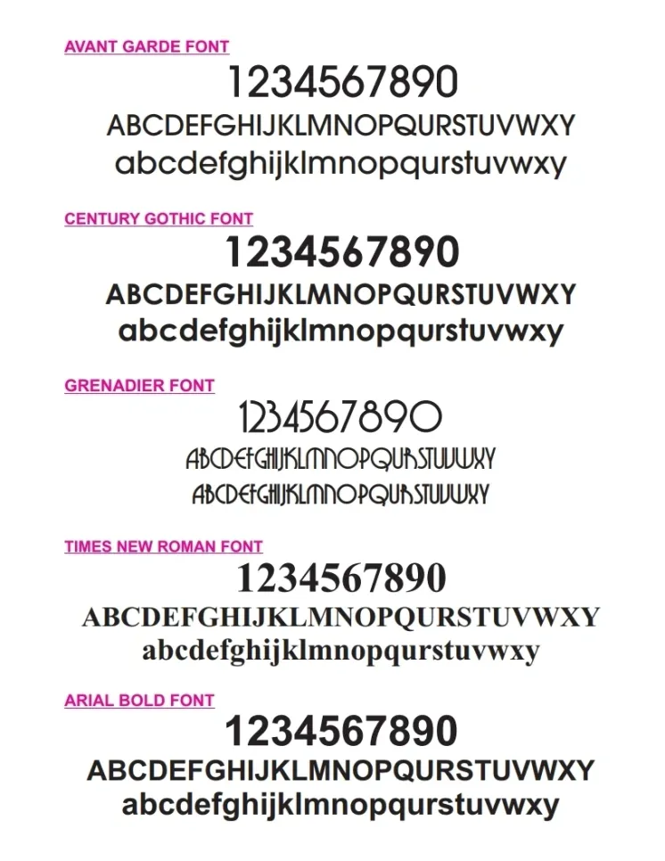 Picture example text is : AVANT GARDE font