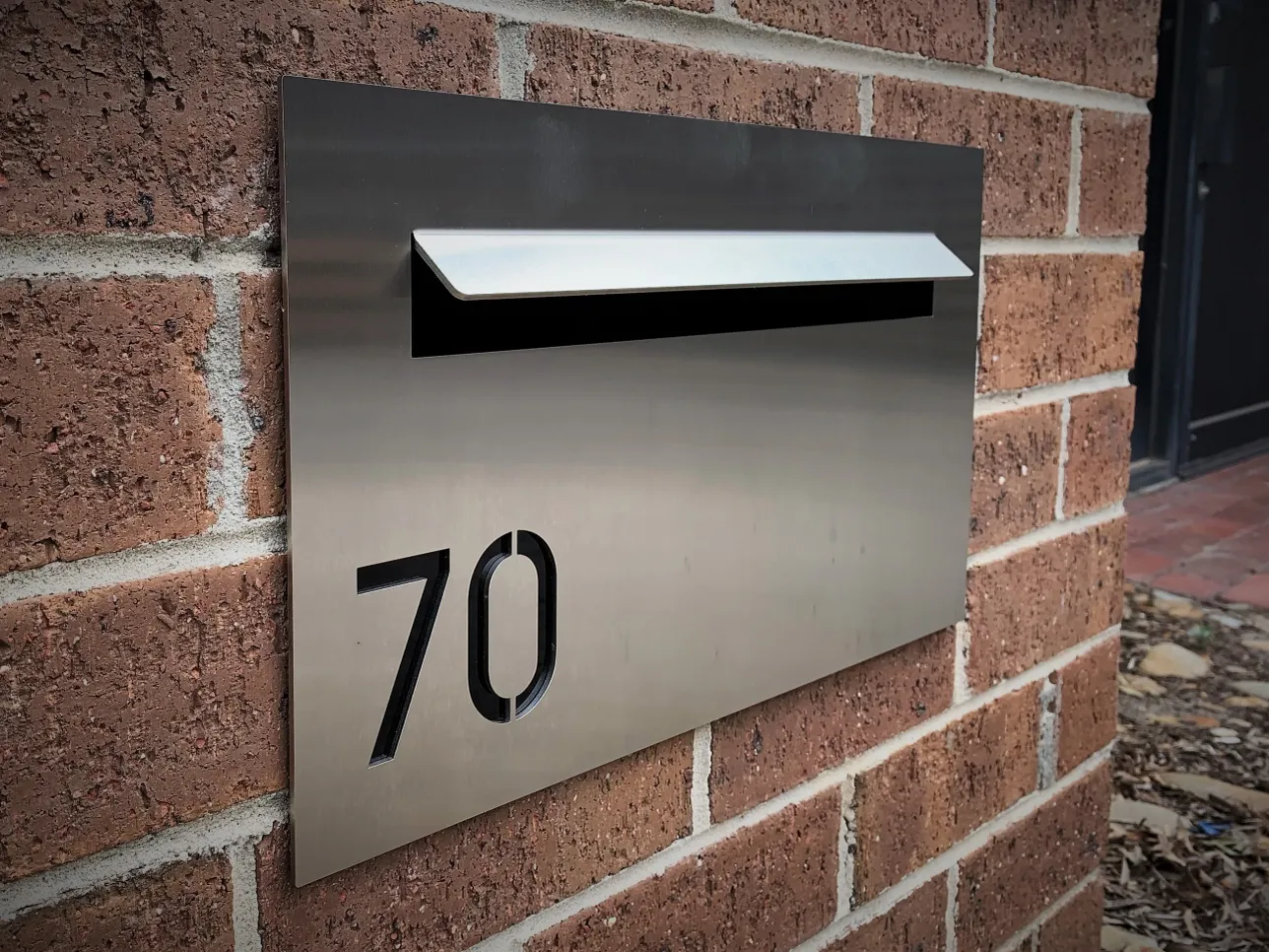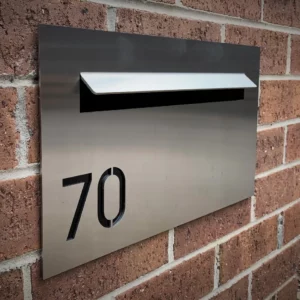 The TASMAN 02 is an off-set NUMBERED letterbox with no paperhole, A4 letterslot with LASER CUT Number that’s backed with BLACK acrylic to highlight the numbering.