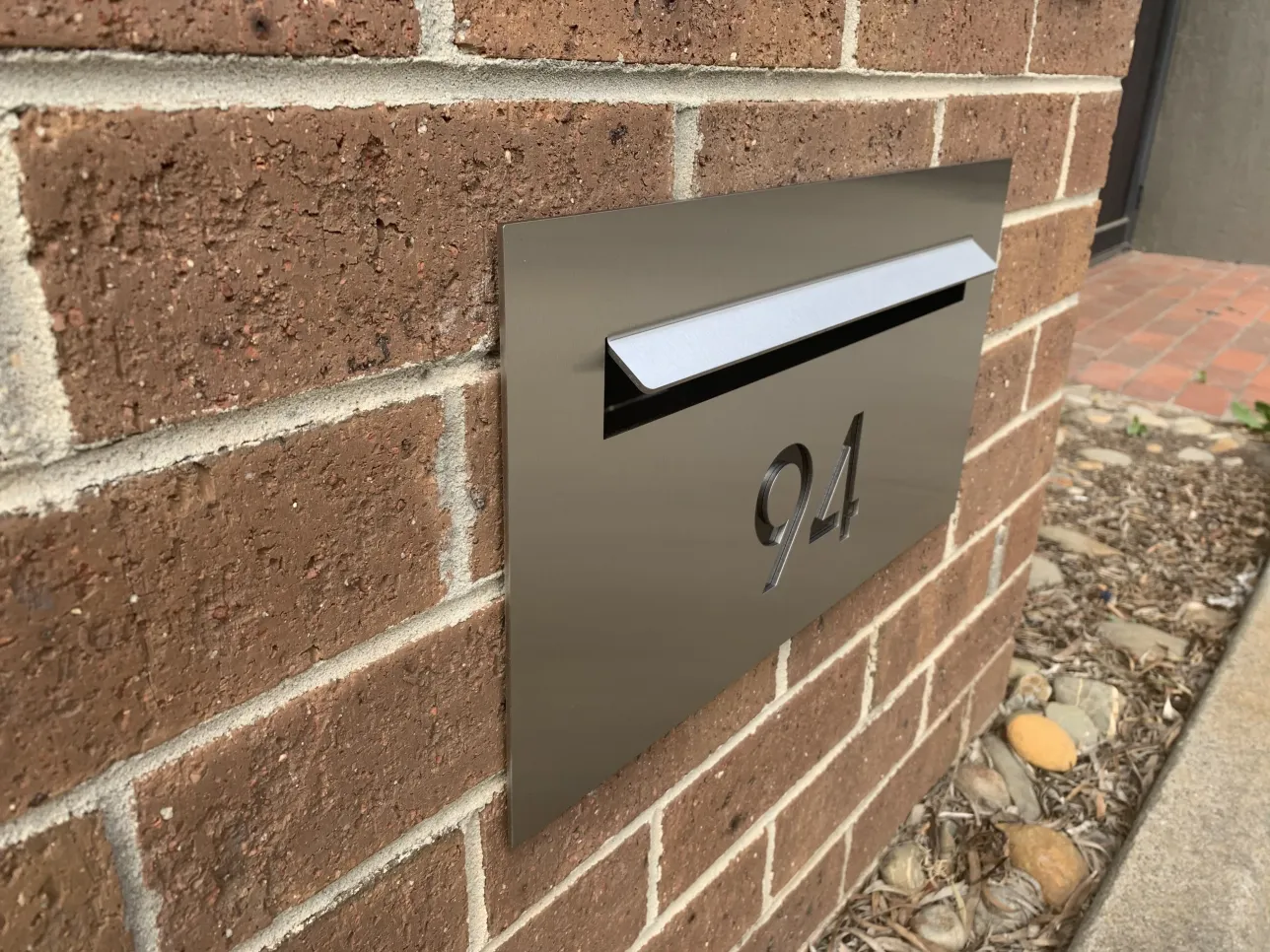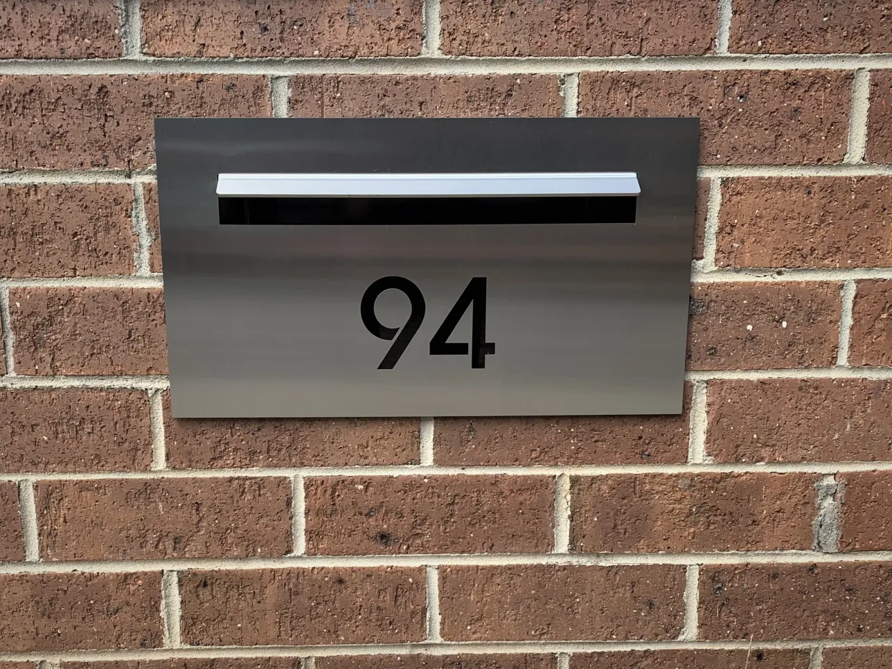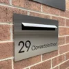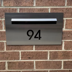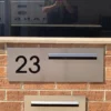 The TASMAN 04 is a central NUMBERED letterbox with no paperhole, A4 letterslot with LASER CUT Number that’s backed with BLACK acrylic to highlight the numbering, example picture numbering is Avant Garde Font.